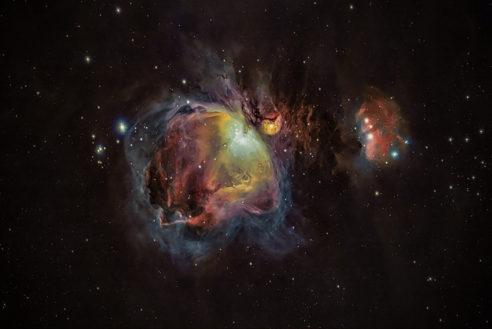 The Orion Nebula (also known as Messier 42, M42, or NGC 1976) is a diffuse nebula in the Milky Way situated south of Orion’s Belt in the constellation of Orion and is known as the middle “star” in the “sword” of Orion.