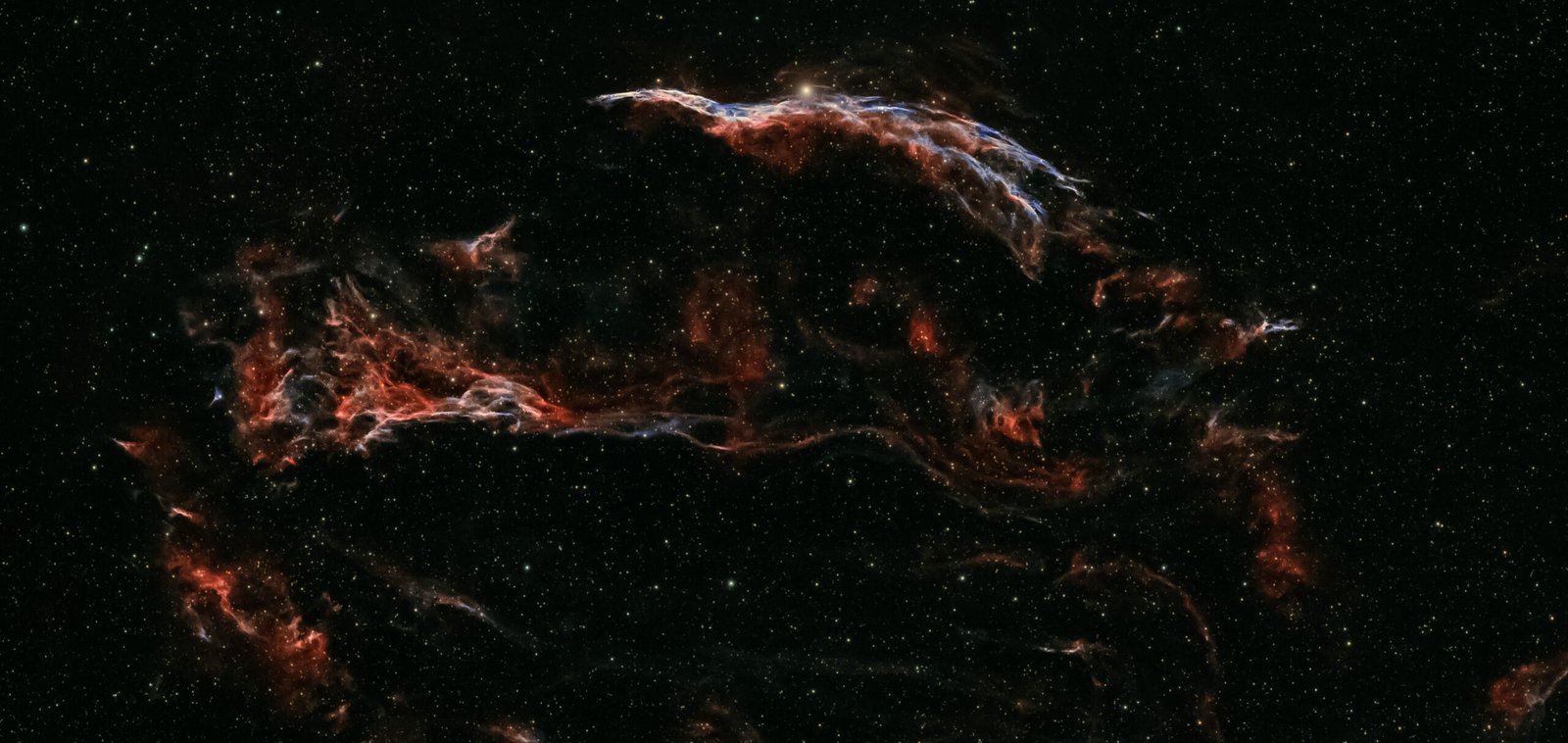 It constitutes the visible portions of the Cygnus Loop, a supernova remnant, many portions of which have acquired their own individual names and catalogue identifiers. The source supernova was a star 20 times more massive than the Sun which exploded between 10,000 and 20,000 years ago.